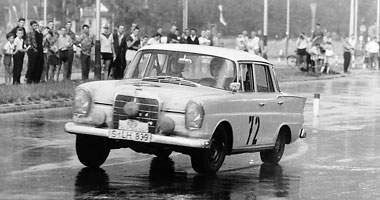 In the late fifties and early sixties, the six-cylinder 220 SE and 300 SE saloons and the 300 SL sports car became a subject of discussion along the roads and dirt tracks of the world. In 1956, the team of Walter Schock and Rolf Moll won the European Rally Championship. An unexpected victory was clinched by the Kling/Günzler duo in the 14,000 kilometre Mediterrannée–Le Cap Rally in 1959, driving a Mercedes-Benz 190 D. The following year, it was again the Schock/Moll team that secured the European Rally Championship for itself in a 220 SE: they were the first to cross the finishing line in both the legendary Monte Carlo Rally and the Acropolis Rally in Greece.