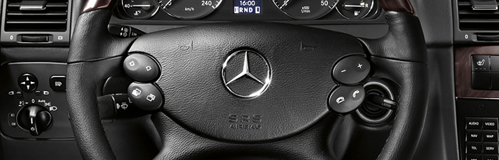 With the standard-fit multifunction steering wheel (in the G 320 CDI in leather and in the G 500 in a wood/leather combination) the driver has everything in sight and under control: you can use the buttons to call up all the information on the new instrument cluster display, adjust the comfort settings and operate the radio and telephone.