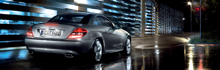 The SLK is available as an option with bi-xenon headlamps equipped with headlamp cleaning system, dynamic headlamp range adjustment and cornering light function. The cornering light function integral to the fog lamps is also automatically activated on the appropriate side at a speed of up to 40 km/h when turning or when driving around narrow corners, providing better illumination of the road.
