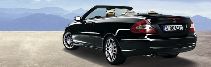 The CLK Cabriolet awakens many emotions – and in the Sport Edition, it also inspires plenty of sporting passion. Dynamism becomes palpable from the first moment thanks to the AMG styling which envelops the CLK Cabriolet at the front and rear apron as well as the side sill panels. These are rounded off perfectly by the striking 18-inch twin-spoke light alloy wheels. Other features which are sure to catch your eye are the exhaust tailpiece, the perforated front brake discs and the brake calipers with Mercedes-Benz lettering.