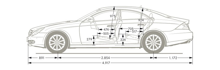 All measurements in millimetres. The dimensions shown are mean values and apply to standard-specification, unladen vehicles.