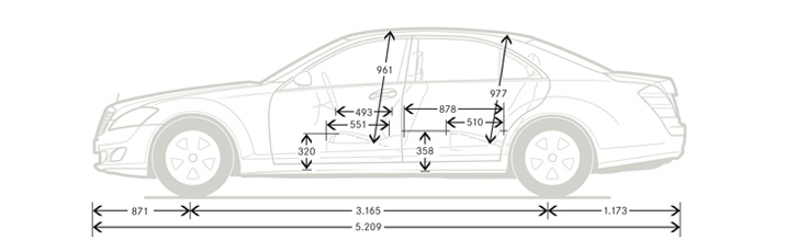 All measurements in millimetres. The dimensions shown are mean values and apply to standard-specification, unladen vehicles.